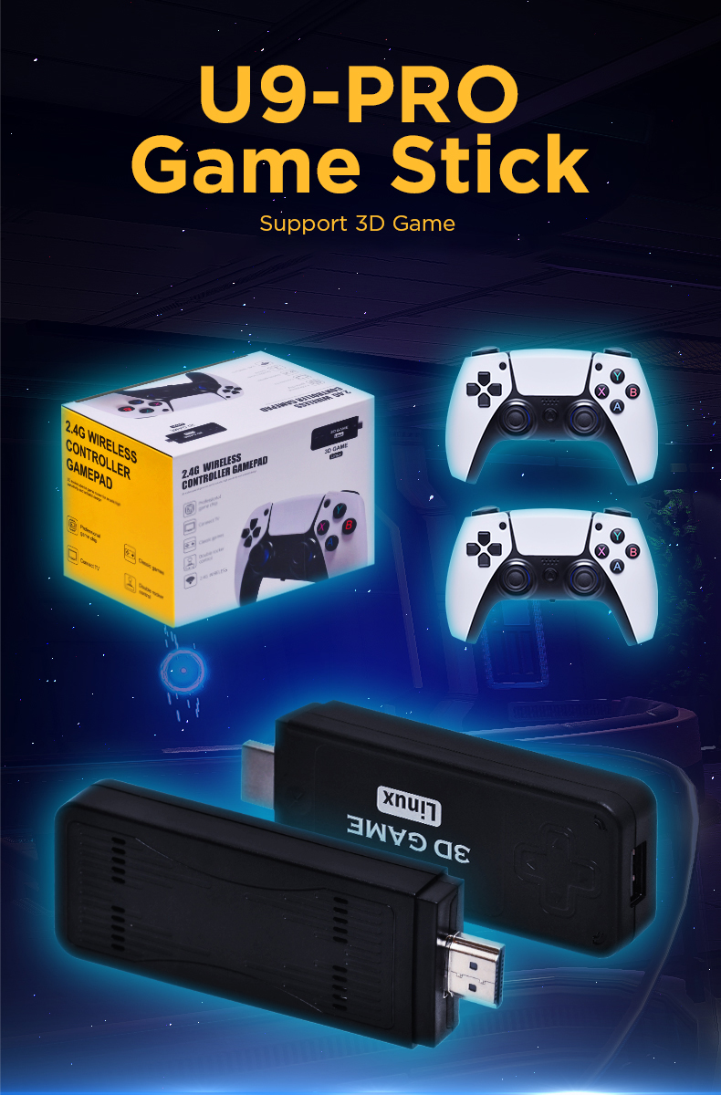 Retro Videoherní konzole U9 Pro Game Stick 4K HD, je navržené pro hraní starších videoher a konzolových titulů, které byly populární v minulých dekádách. Jednoduchá herní konzole, která má své vlastní kouzlo a nostalgickou hodnotu pro hráče, kteří si chtějí znovu prožít herní zážitky z minulosti